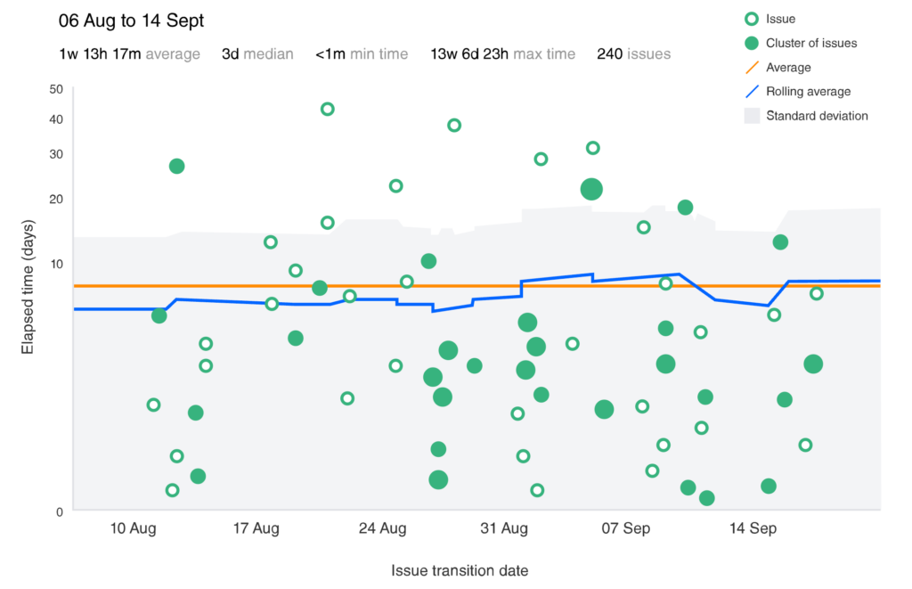 • Vali Cycle Time kui fookuses on tiimi sisene töövoog ja efektiivsus: kitsaskohad, valmimise prognoosimine, jmt.